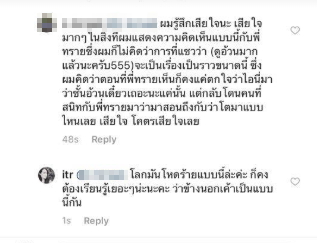 ด้านคนที่เข้ามาวิจารณ์ "ทราย" ได้เข้ามาขอโทษพร้อมกับบอกไม่เคยว่าจะเป็นเรื่องราวขนาดนี้ ซึ่ง "ทราย" ได้ให้ข้อคิดไปเช่นกัน
